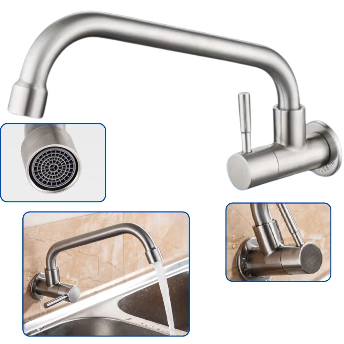 🔄 Pescoço longo com rotação de 360° – ideal para pias grandes, facilita o manuseio de panelas e utensílios maiores